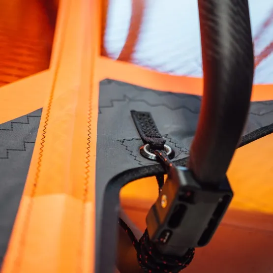 Napięcie po maszcie jest rozkładane pomiędzy dolny panel i kieszeń masztową, dzięki czemu żagiel jest idealnie naprężony i łatwo rotuje