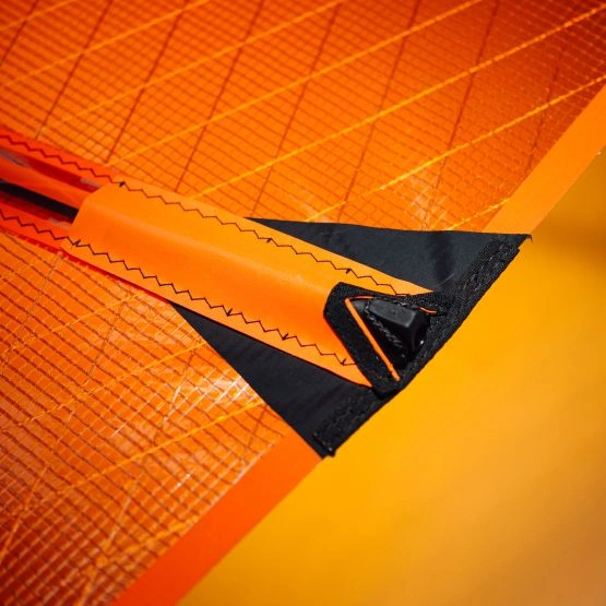 Napięcie po maszcie jest rozkładane pomiędzy dolny panel i kieszeń masztową, dzięki czemu żagiel jest idealnie naprężony i łatwo rotuje