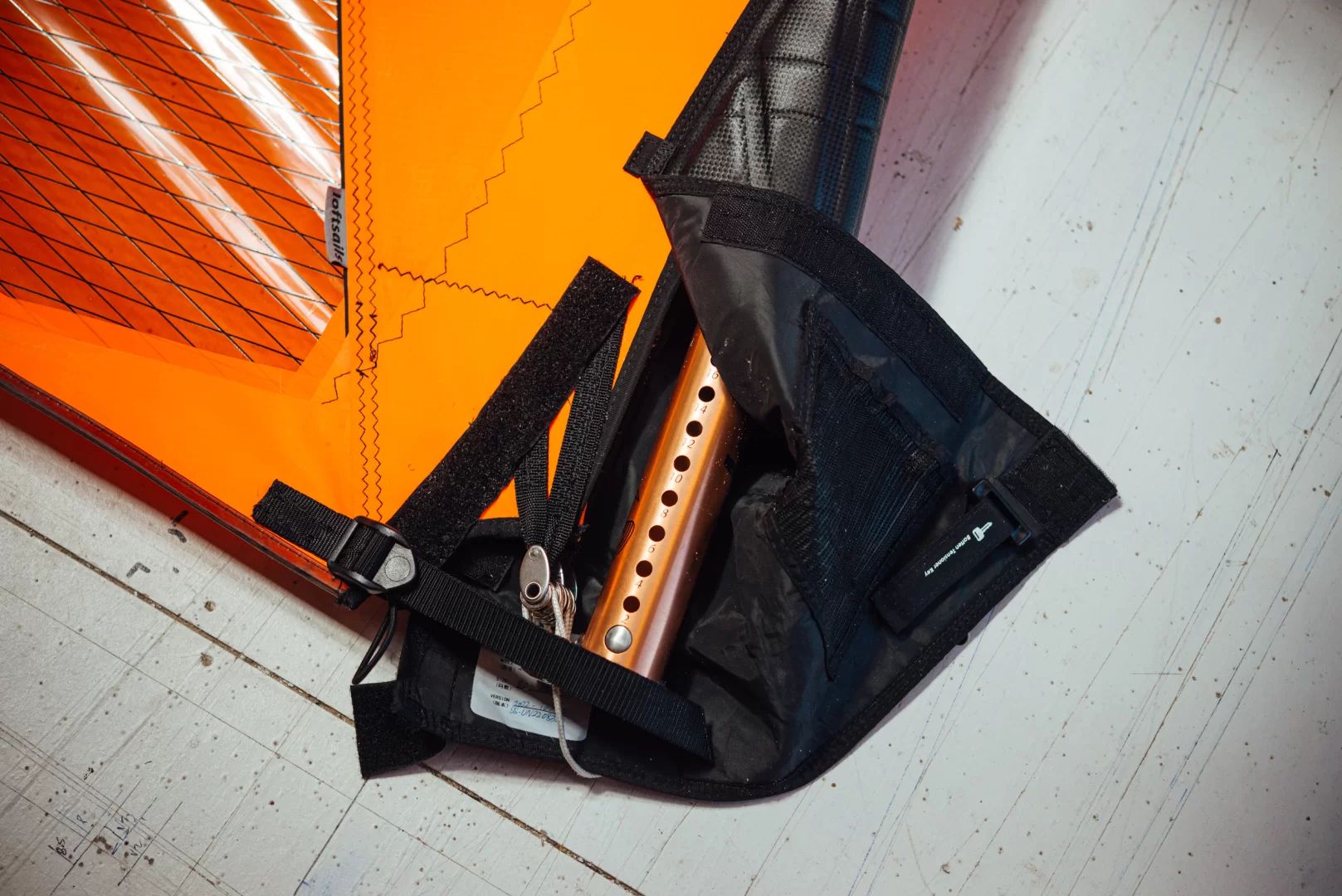 Kevlarowe wstawki wewnątrz kieszeni masztowej ustalają profil i zwiększają stabilność.