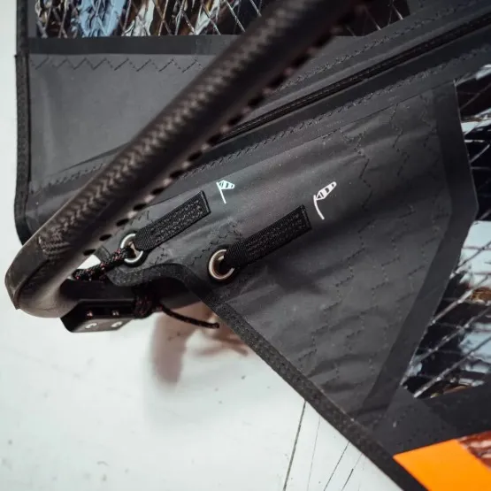 Umożliwia dostosowanie charakterystyki pracy firany żagla do panujących warunków i preferencji ridera. Górne oczko usztywnia top żagla i pozwala uzyskać więcej mocy, dolne oczko czyni żagiel bardziej miękkim i uwalnia nadmiar wiatru.