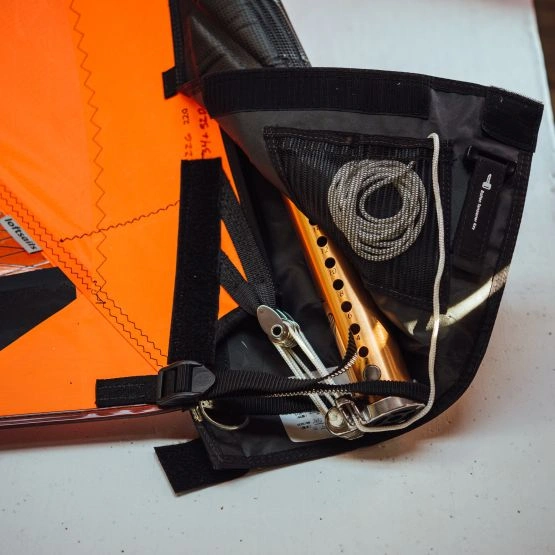 Składająca się z 3 warstw kieszeń masztowa jest uszyta z czteroosiowego X-Ply o grubości 2 mil. Jest to superlekki materiał bez pamięci kształtu, co pomaga w utrzymaniu liku przedniego w optymalnym stanie.