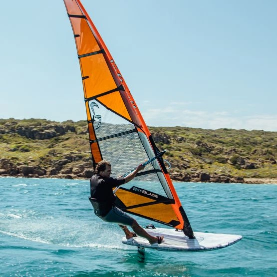 Foile generują znacznie mniejszy opór w porównaniu do konfiguracji ze statecznikiem. Podczas lotu pilot wymaga dużej mocy do uzyskania prędkości i super precyzyjnej kontroli. Aby w pełni wykorzystać niski opór stawiany przez foila, Skyblade cechuje się wysokim aspect ratio (jest długi po maszcie i krótki po bomie) i zmniejszoną firaną. Żagiel gwarantuje doskonałą stabilność profilu dzięki sztywnej ramie z 7 listew i z 4 kamberami.