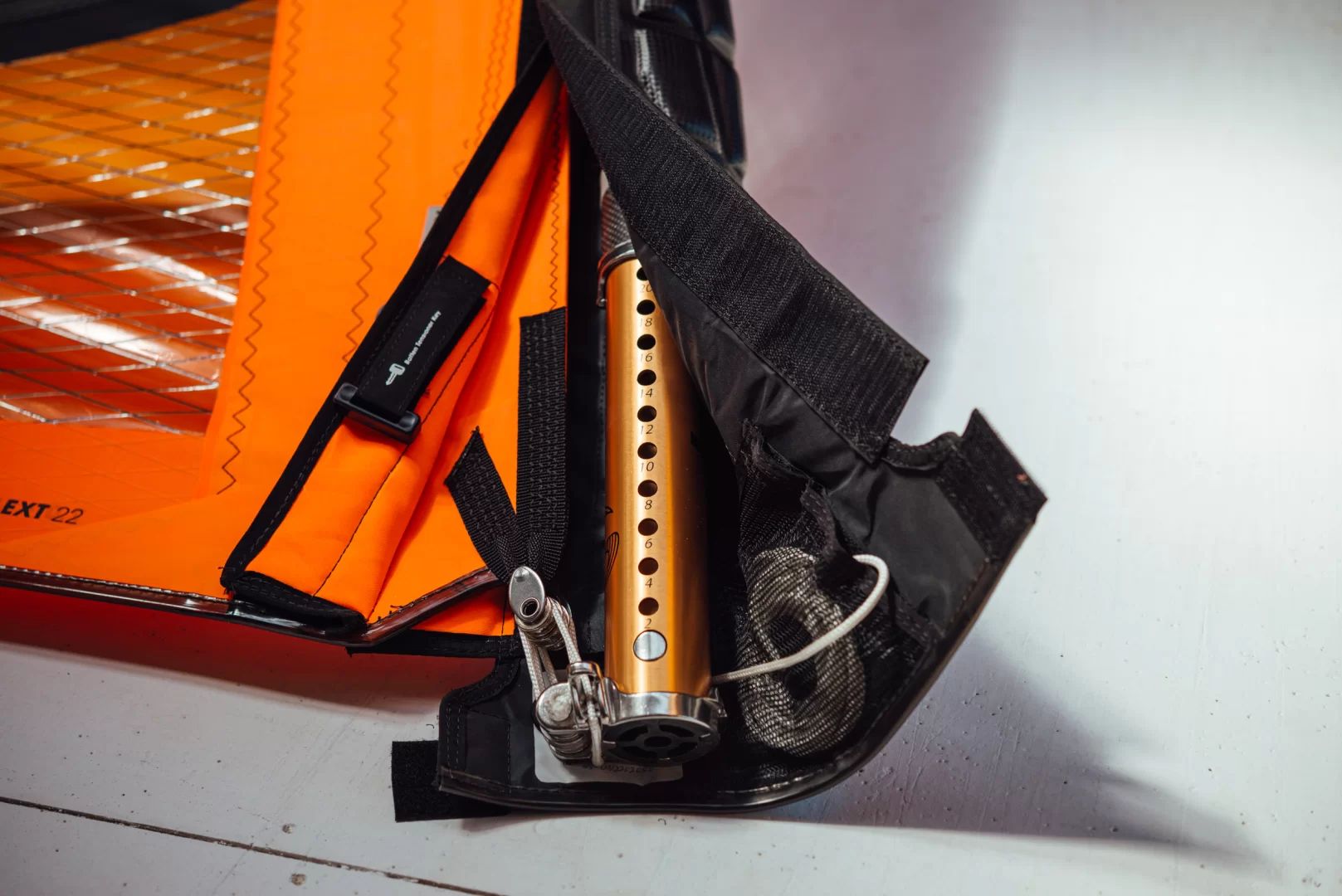 Kevlarowe wstawki wewnątrz kieszeni masztowej ustalają profil i zwiększają stabilność.