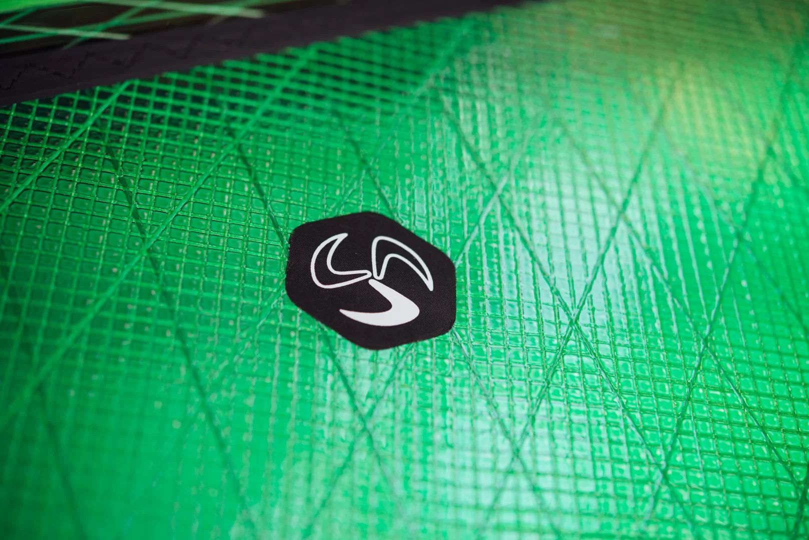 3-warstwowe radiale na topie, w rogu szotowym i rogu halsowym rozchodzą się do centralnej części żagla, wykonanej w całości z X-Ply, zapewniając najwyższą odporność i optymalny rozkład naprężeń w ciężkich warunkach surf.