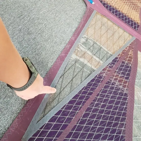 | Powierzchnia (m²) | Luff (cm) | Bom (cm) | Przedłużka (cm) | Maszt | Listwy | Kambery | Vario top | Waga (kg) |