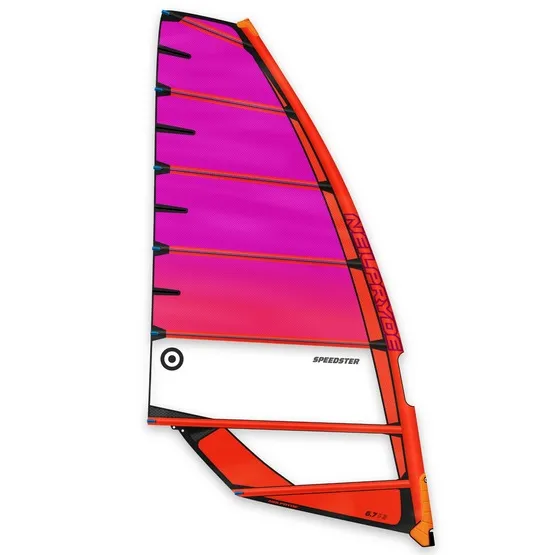 Slalomowa prędkość bez potrzeby użycia kamberów. Speedster od początku swojego istnienia stał się ulubionym bezkamberowym żaglem freerace wśród riderów na całym świecie. Jego kształt jest zainspirowany żaglami slalomowymi NeilPryde RS:Racing i ma umiarkowaną krzywiznę liku przedniego, zapewniającą stabilność i maksymalny zakres wiatru.