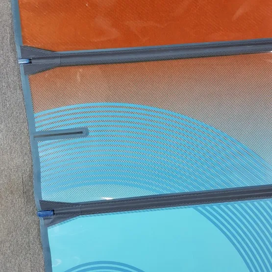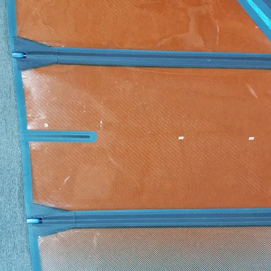 | Powierzchnia (m²) | Luff (cm) | Bom (cm) | Przedłużka (cm) | Maszt | Listwy | Kambery | Vario top | Waga (kg) |