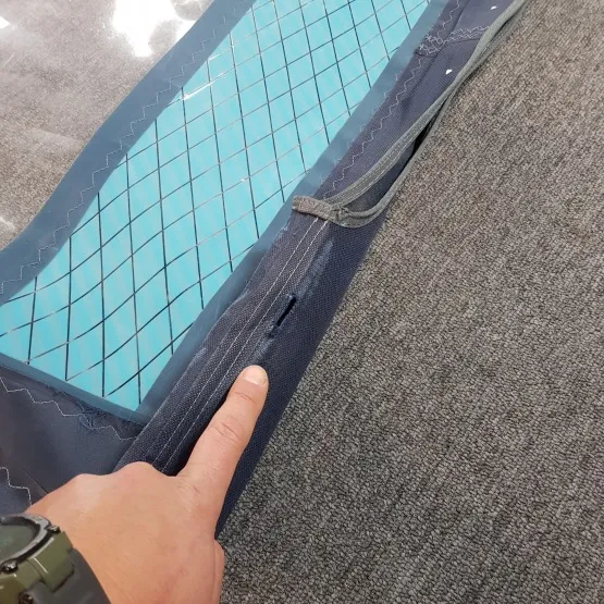 | Powierzchnia (m²) | Luff (cm) | Bom (cm) | Przedłużka (cm) | Maszt | Listwy | Kambery | Vario top | Waga (kg) |