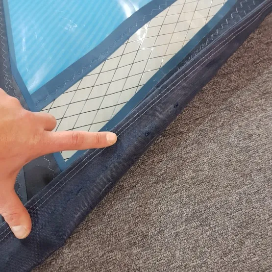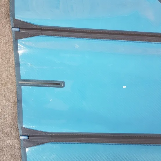 | Powierzchnia (m²) | Luff (cm) | Bom (cm) | Przedłużka (cm) | Maszt | Listwy | Kambery | Vario top | Waga (kg) |
