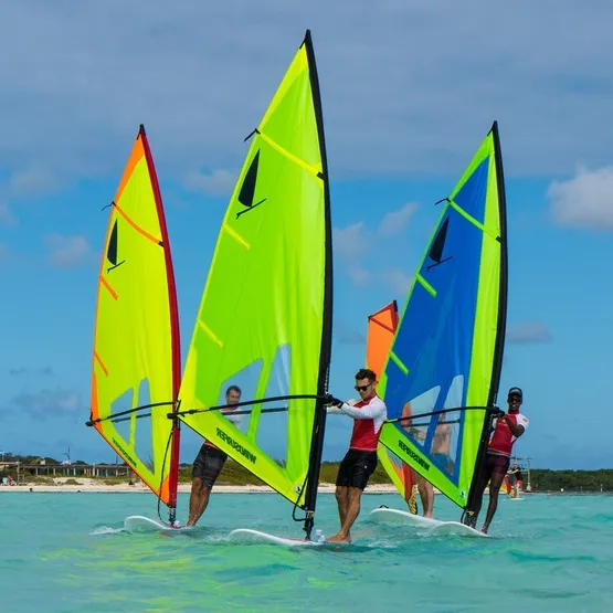 Linia żagli Windsurfer, stworzona z myślą o łatwości i wytrzymałości, jest idealnym wyborem dla rekreacyjnych windsurferów. Pojedyncza listwa w górnej części żagla, brak kamberów i dwie mini listwy zapewniają odpowiednią stabilność w warunkach słabego wiatru. Dodatkowo, konstrukcja z głębokim profilem zapewnia optymalny poziom mocy w każdej sytuacji.