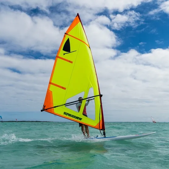 Linia żagli Windsurfer, stworzona z myślą o łatwości i wytrzymałości, jest idealnym wyborem dla rekreacyjnych windsurferów. Pojedyncza listwa w górnej części żagla, brak kamberów i dwie mini listwy zapewniają odpowiednią stabilność w warunkach słabego wiatru. Dodatkowo, konstrukcja z głębokim profilem zapewnia optymalny poziom mocy w każdej sytuacji.