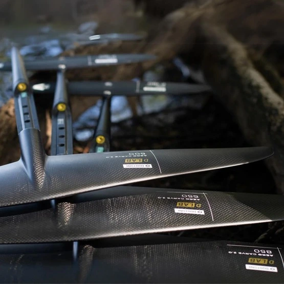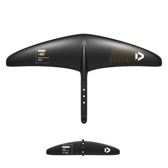 Przednie skrzydło: Aero Carve 2. 0 D/LAB to jak dotąd najbardziej zaawansowane przednie skrzydło Duotone! W celu zredukowania oporu i wagi folii do minimum, producent zdecydował się połączyć przednie skrzydło i przednią połowę kadłuba. Eliminuje to wszelkie kompromisy w zakresie kształtowania przedniego skrzydła, aby pasowało do mocowania przedniego skrzydła kadłuba. Pozwala to również na usunięcie trzech śrub, które są niezbędne do zamocowania przednich skrzydeł SLS na kadłubach, jeszcze bardziej zmniejszając opór i wagę. Carve 2.0 D/LAB, podobnie jak wariant SLS, znacznie różnią się od poprzedniej serii Carve. Czują się znacznie mniej oporne i znacznie luźniejsze pod względem przechyłu, pozwalając kierowcy na bardziej naturalne wykonywanie skrętów od pięty do palców. Prędkość w górnym zakresie została również zwiększona dzięki cieńszemu profilowi w kierunku końców skrzydeł, a wyższy współczynnik kształtu pozwala Carve 2.0 D/LAB na szybowanie i pompowanie znacznie lepiej niż jego poprzednik. W porównaniu do serii SLS, współczynnik kształtu jest nieco niższy, a profil nieco cieńszy i szybszy, aby umożliwić tym skrzydłom osiąganie większych prędkości, niezależnie od tego, czy chodzi o zjeżdżanie z szybkich fal, wykonywanie najbardziej zaawansowanych trików freestyle’owych, czy nawet zawody wingfoil lub kite foil.